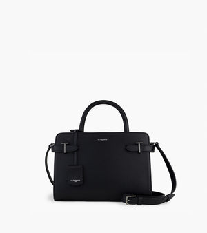 Petit sac à main avec poignées toron et trois compartiments dont un zippé. Pièces T métalliques signature de la ligne. Charms embossé Le Tanneur amovible. Porté main, épaule ou croisé grâce à sa bandoulière ajustable et amovible.