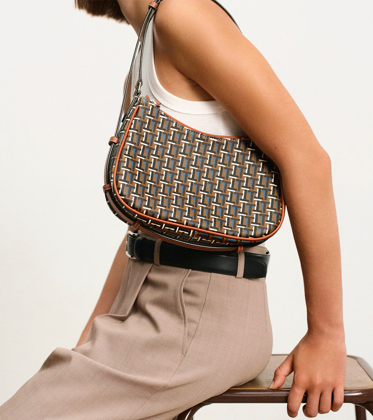Die Reisetasche 24h aus unserer Camille-Linie zeichnet sich vor allem durch die Materialien aus, die für ihre Herstellung verwendet wurden. Sie ist eine Kombination aus beschichtetem Canvas und Glattleder, eine unserer bevorzugten Kombinationen, die für ihre hohe Widerstandsfähigkeit und Leichtigkeit bekannt ist. Sie verfügt über Toron-Griffe für ein angenehmes Tragegefühl, die direkt von der Handwerkskunst von Le Tanneur zeugen, sowie über T-förmig abgesteppte, spitz zulaufende Laschen, die das Markenzeichen des Hauses sind. Die Tasche wird in der Hand getragen, kann aber dank des verstellbaren und abnehmbaren Schulterriemens auch doppelt getragen werden: über der Schulter und über Kreuz. Im Inneren finden Sie unser Lieblingsfutter in der Farbe Le Bleu, einem weiteren Markenzeichen des Hauses. Was bei Camille jedoch besonders auffällt, ist ihr Signature Canvas, das mit kontrastierenden Ts verziert ist. Dieses Motiv findet sich auf allen Stücken der Linie wieder. Beschichtetes Canvas ist ein wunderbares Feld, um sich auszudrücken, und Camille ist das perfekte Beispiel dafür.