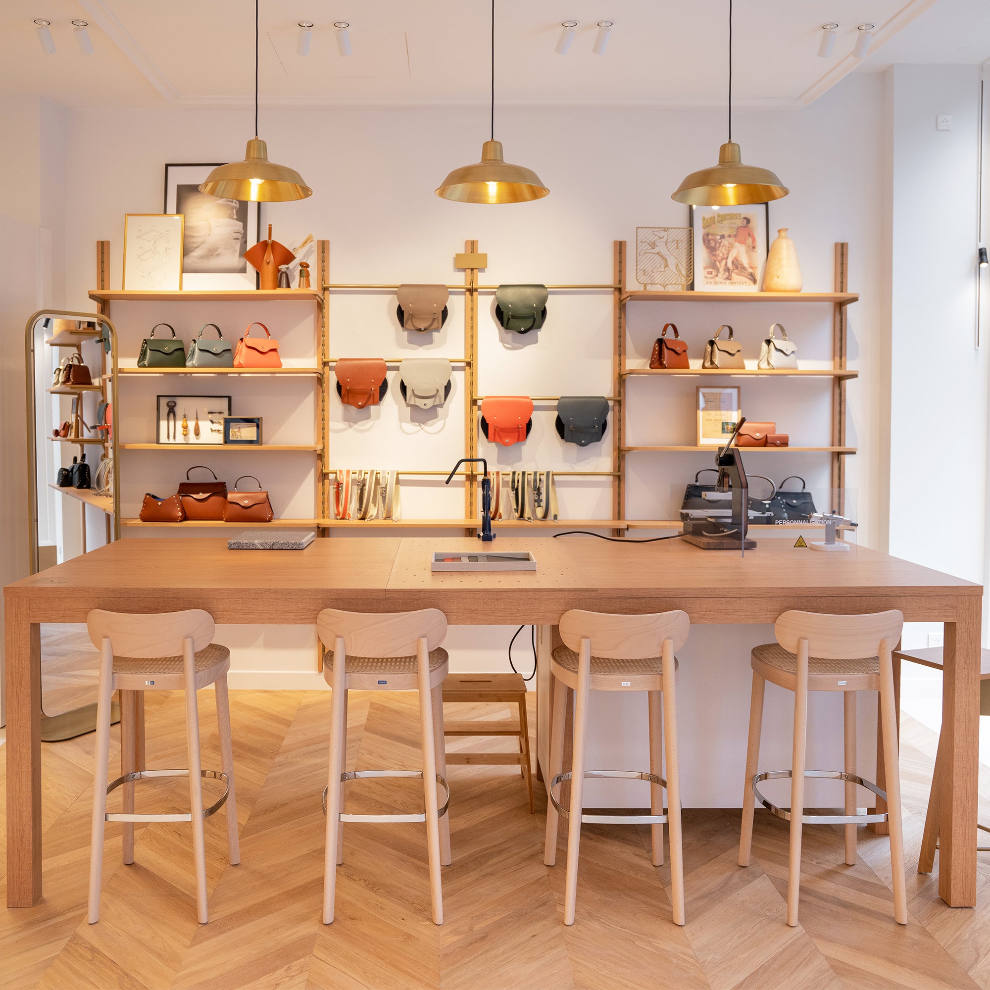 A master leatherworker's workshop that is open and accessible and designed to showcase our craftsmen at work, illustrating each stage in the design of our leather goods. You can also watch your own bag being created, personalise your Le Tanneur item.