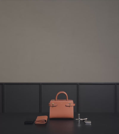 Exclusive signature leather of our Maison, embossed with microscopic T letters creating a distinctive and timeless pattern.