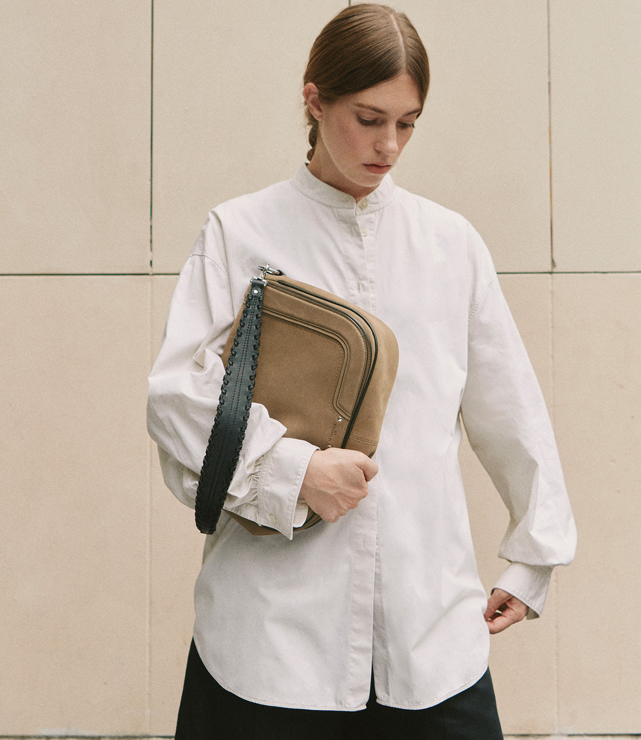 Shearling is a doublefaced sheepskin with wool on one side. Warm and soft, it adds comfort and character to bags, evoking a cosy and natural style.