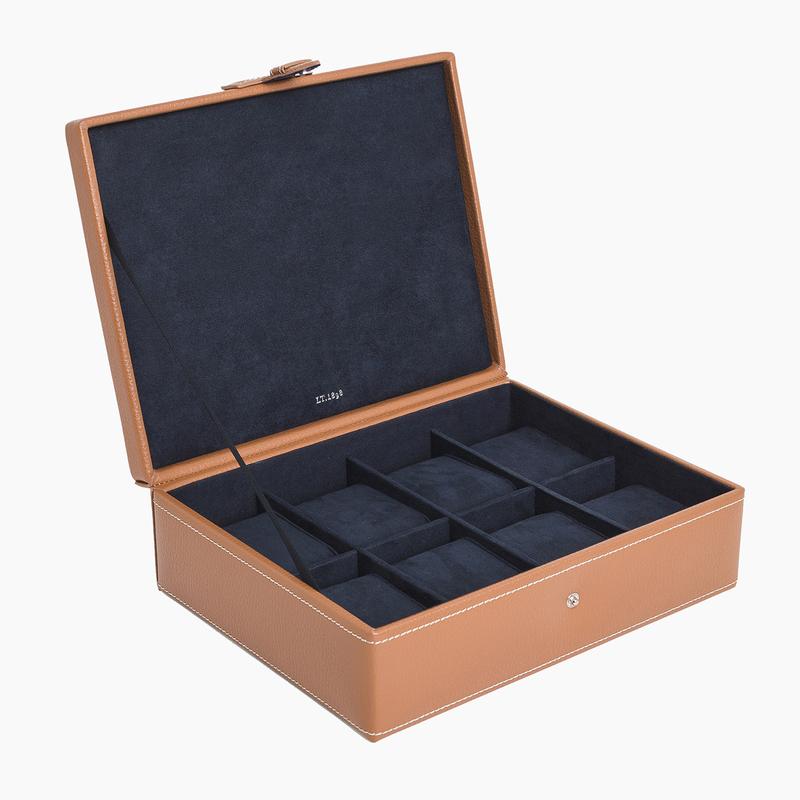 Don't leave without discovering our "small format" boxes, a direct variation of the large watch boxes. These leather cufflink boxes are ready to preserve all your precious accessories. Like their counterparts for watches, these "small format" boxes are cult objects, combining daily utility and durability. Prepare to traverse time with these timeless Le Tanneur pieces that discreetly accompany your daily life.