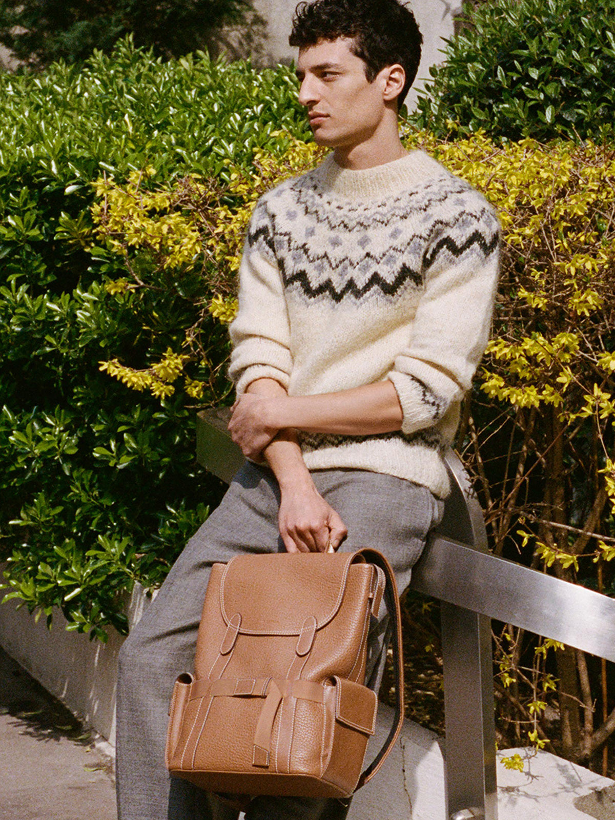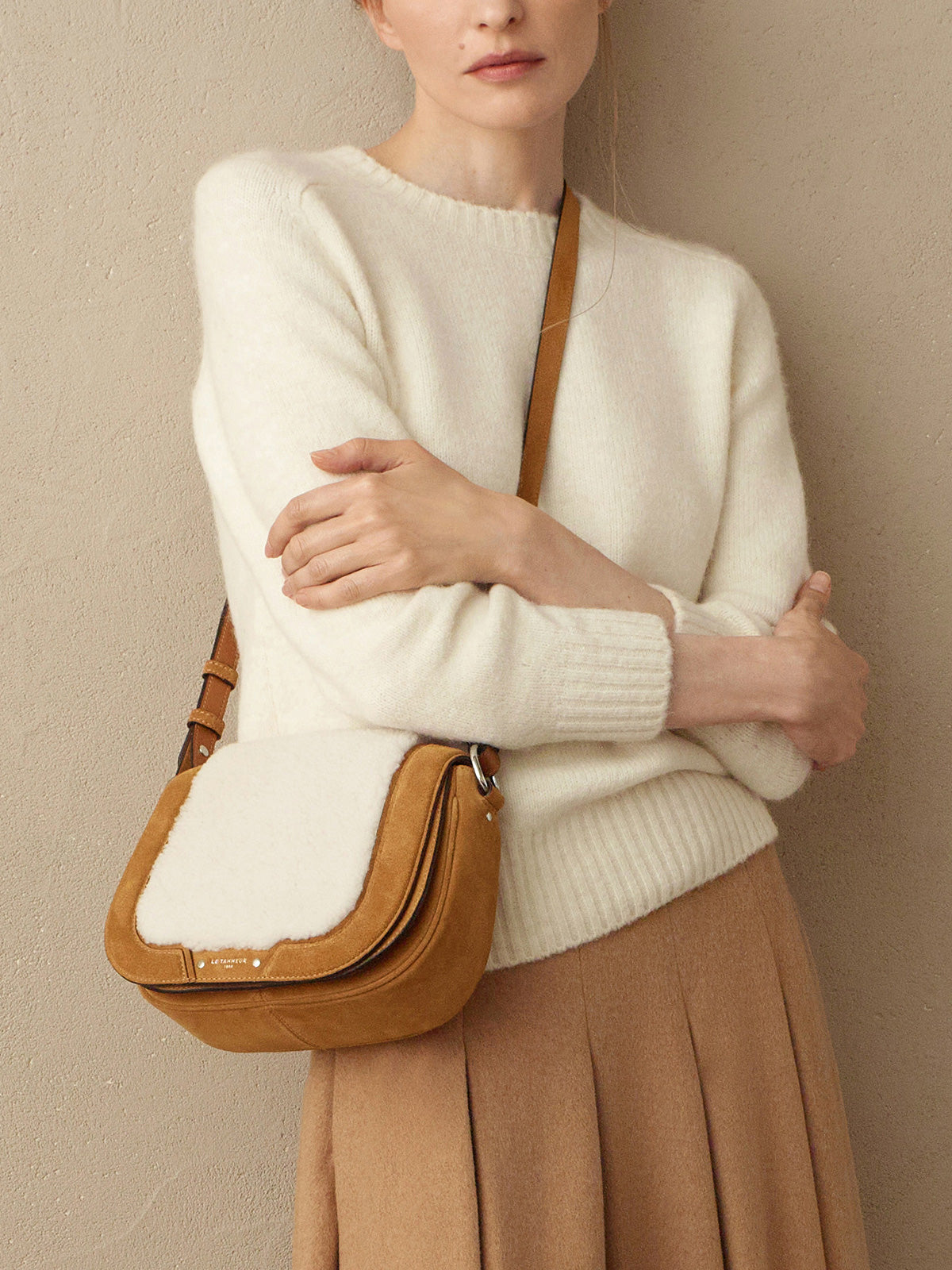 Shearling is a doublefaced sheepskin with wool on one side. Warm and soft, it adds comfort and character to bags, evoking a cosy and natural style.
