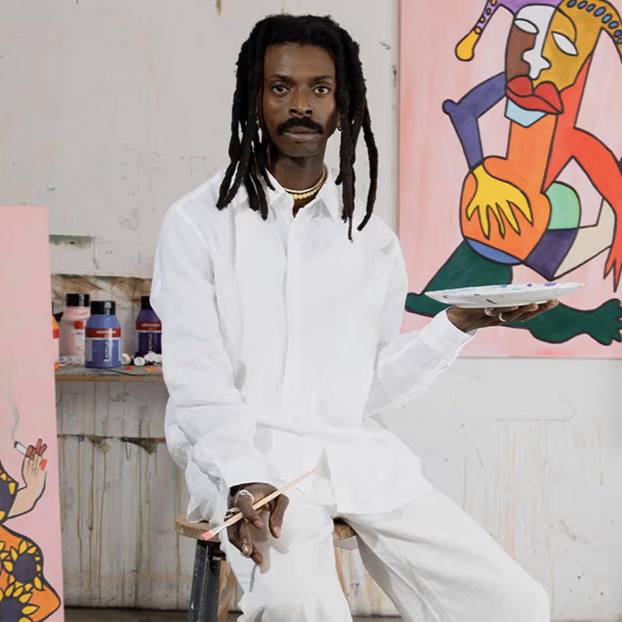 Amante de las cosas bonitas como los materiales finos, la moda y los colores vibrantes, el artista Francis Essoua Kalu, alias Enfant Précoce, es con quien deseamos colaborar para un viaje imaginario al país de las maravillas.