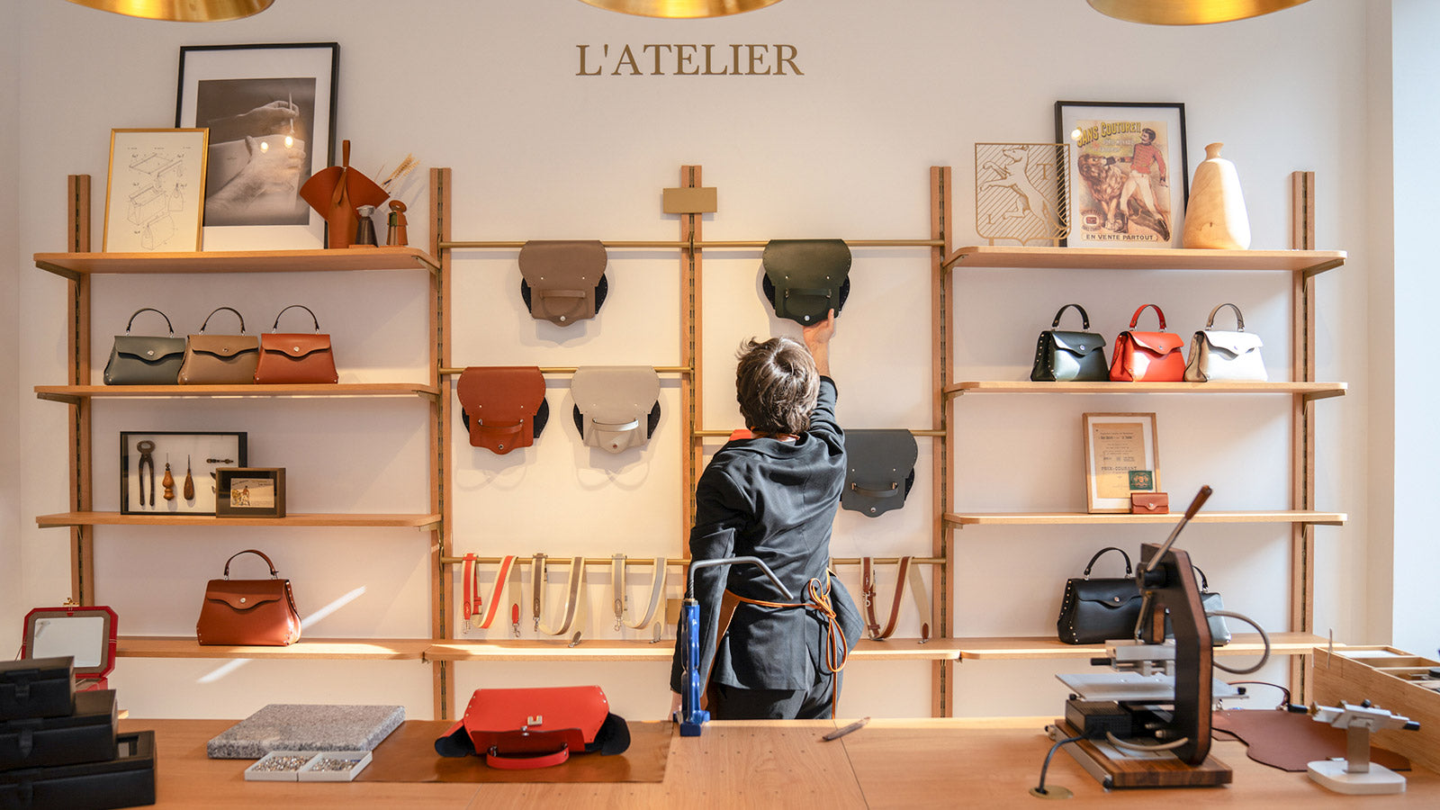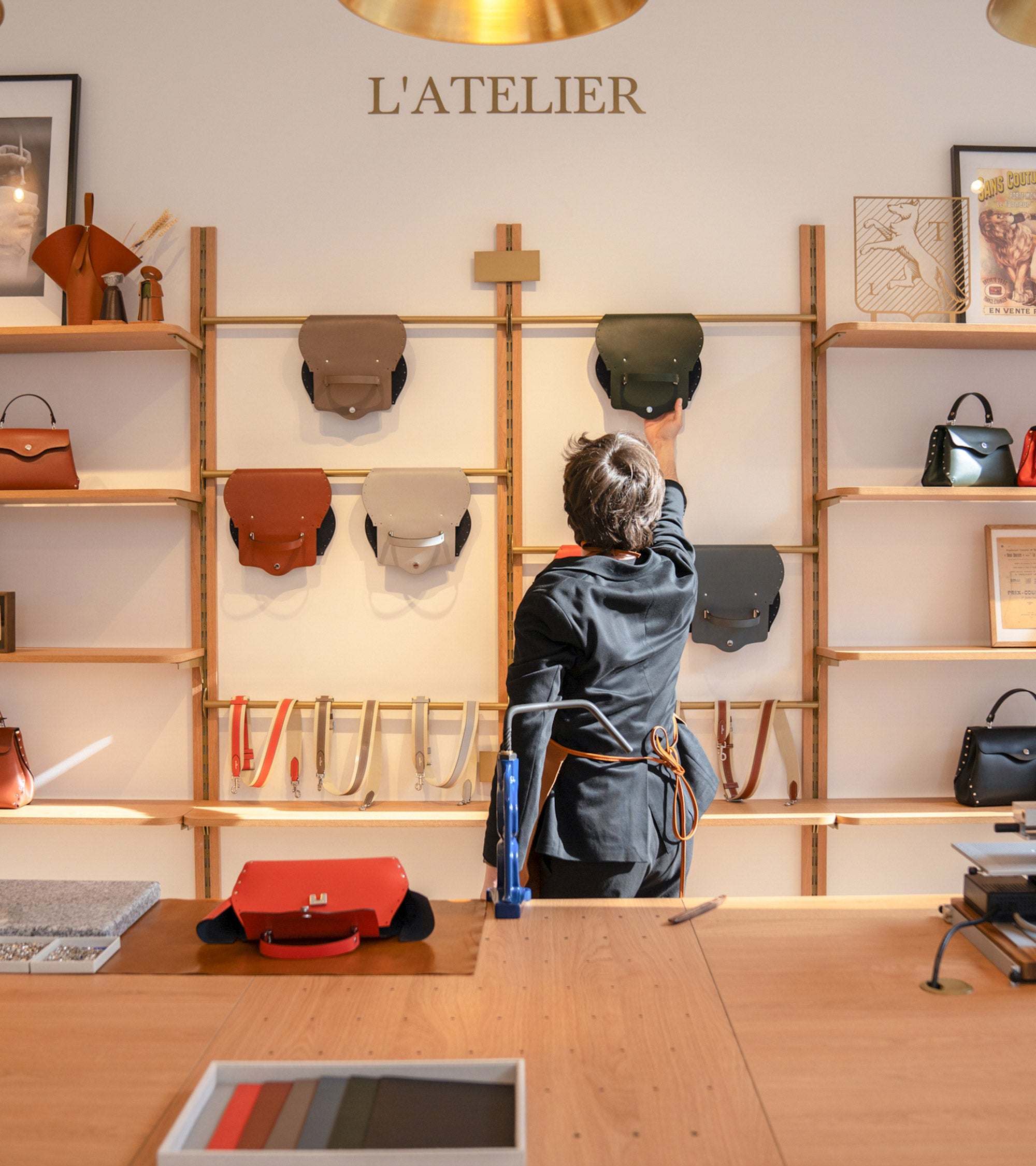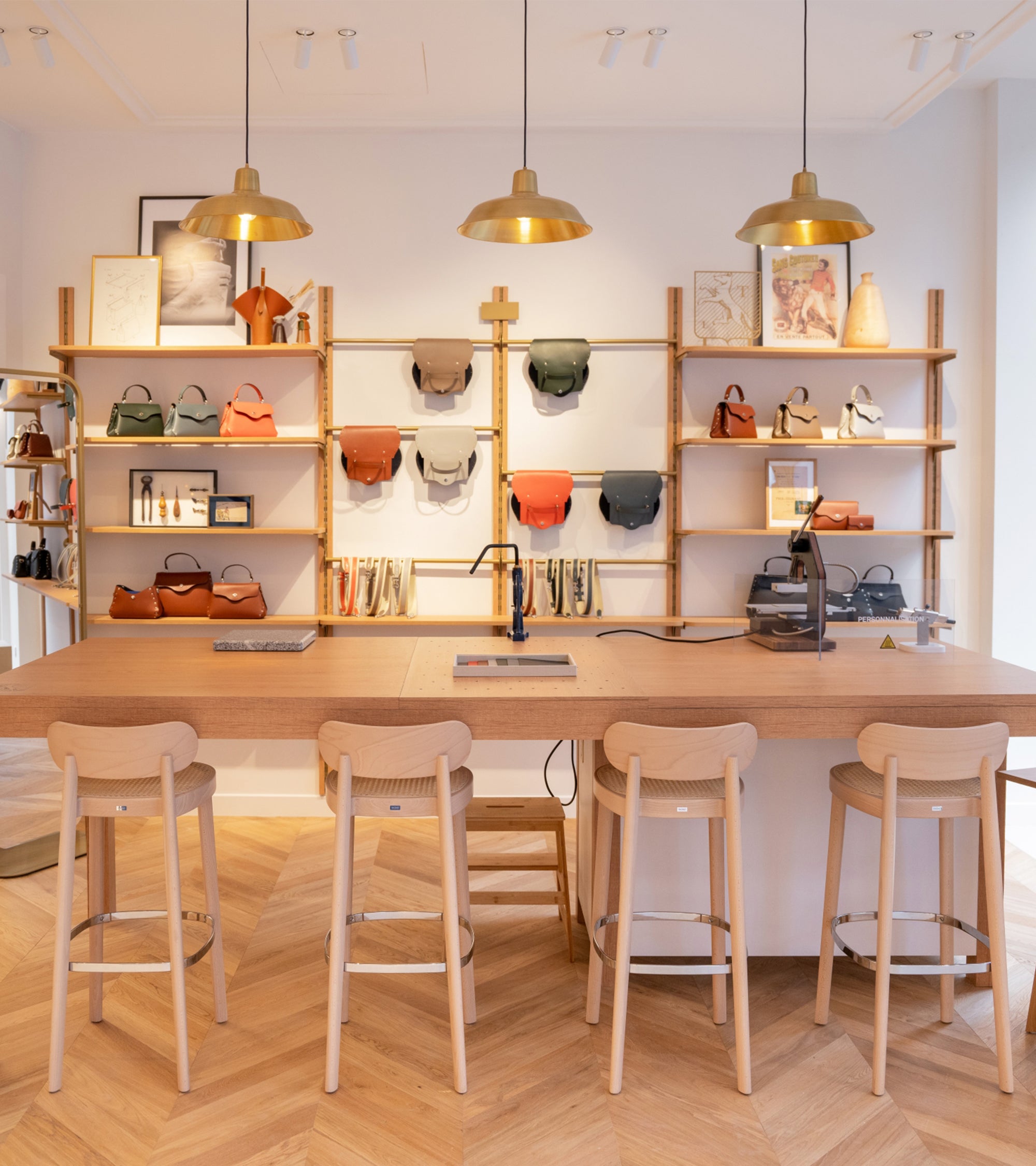 • Un espacio que refleja nuestras creaciones en cuero: Nuestra marroquinería combina belleza y funcionalidad, materiales nobles y un trabajo artesanal impecable. Esta filosofía se refleja en los acabados, la decoración interior y hasta en los forros de cada una de nuestras piezas de cuero.