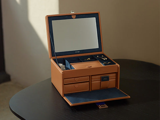 La calidad de los materiales, asociada al sentido común y al buen hacer histórico de Le Tanneur, hacen que nuestras creaciones "intemporales" resulten sostenibles. Por eso, además de la piel plena flor, procuramos utilizar materiales reciclados. Por lo tanto, utilizamos restos sobrantes de piel para desarrollar nuestros estuches para relojes y joyas, así como numerosas piezas de pequeña marroquinería En la actualidad, la mayoría de nuestros joyeros se fabrican con cuero reciclado.